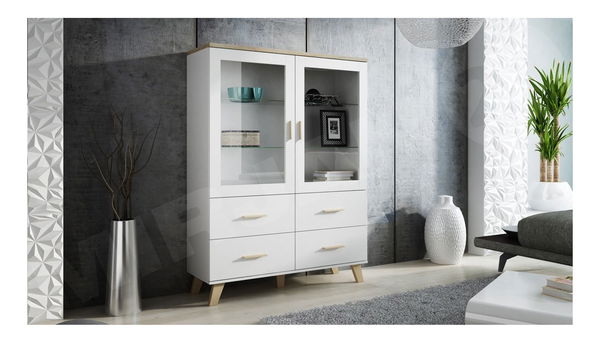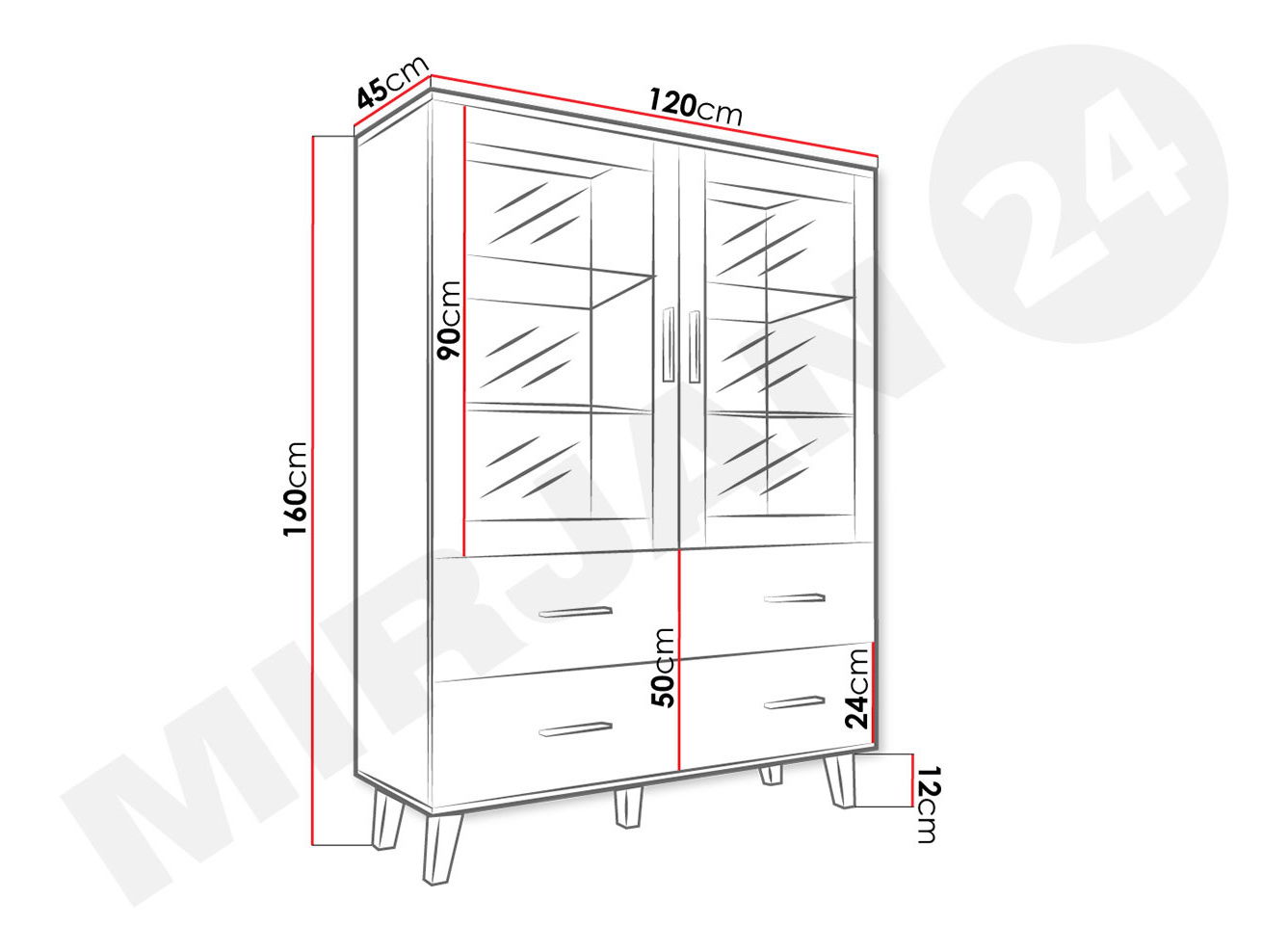 Vitrína je ideální volbou pro ty, kteří hledají pohodlí a styl. Vitrína ve skandinávském stylu je víceúčelový kus nábytku. V horní části je velký výstavní prostor. Prosklené přední strany umožňují vidět krystaly zasazené uvnitř, dekorativní sklo nebo porcelánové nádobí. Spodní část je tvořena prostornými zásuvkami. Každá z nich je dokonalým prostorem pro ubrusy, sezónní dekorace, ale také slavnostní příbor. Vitrína se hodí všude tam, kde se ocení dobrý styl v kombinaci se zvýšenou funkčností. Rozměry: šířka: 120 cm, výška: 160 cm, hloubka: 45 cm Barvy: možnost výběru barev zde Vyrobeno: korpus a čela: 16 mm matná dřevotříska, vrchní deska: 25 mm matná dřevotříska, PVC dýha, rovné panty, kuličková vedení: dřevo, v barvě wotan - plast Záruční doba: 24 měsíců