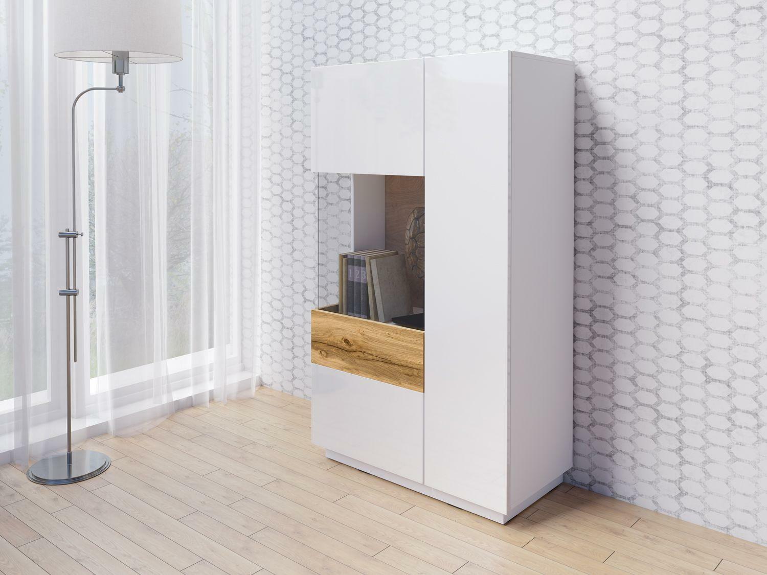Vitrína Stacey Typ 42 (dub + bílý vysoký lesk)