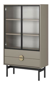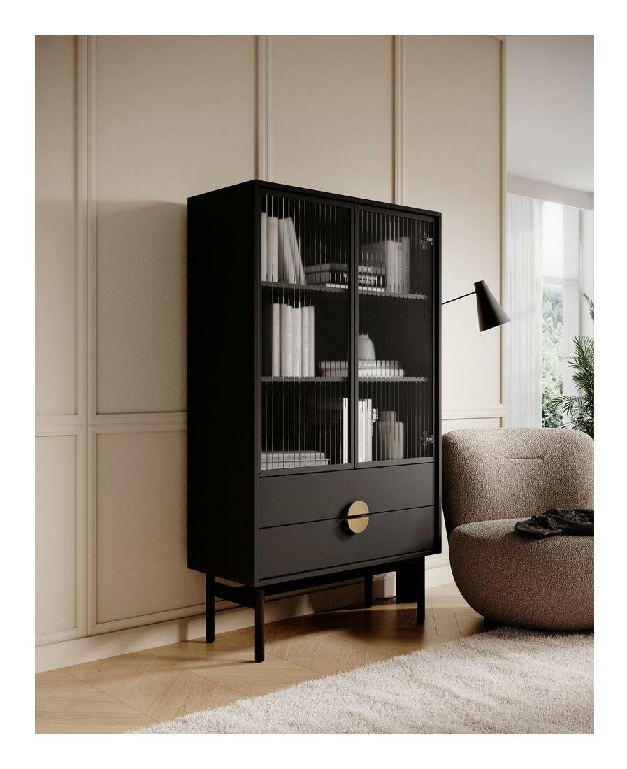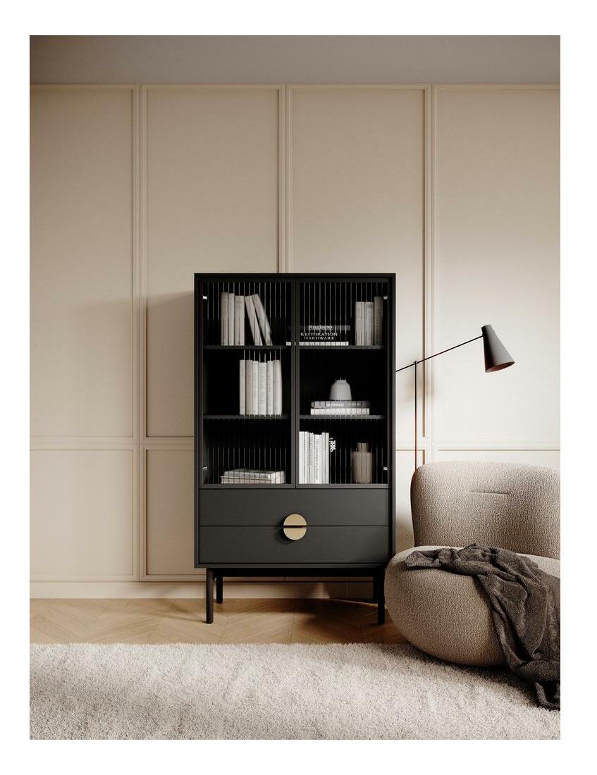 ZobrazitChcete udělat metamorfózu ve svém interiéru? Máte rádi originální řešení a jednoduché formy nábytku? Výběrem naší kolekce vnesete do interiéru harmonii a eleganci a potěšíte své hosty Výkladní skříň s jedinečným designem v elegantní barvě dokonale zapadne do moderních interiérů. Je vyroben z kvalitní laminované dřevotřískové desky, která zajišťuje dlouhodobé a bezproblémové používání. Jeho charakter obohacuje pevný rám z černé oceli, který činí nábytek nejen odolným, ale dodává mu i industriální šarm. Zlaté úchytky tvořící kruh jsou zase nejen praktickým prvkem, který usnadňuje otevírání, ale dodávají celé skříňce eleganci a jemný lesk. Tento malý, ale rafinovaný detail odlišuje nábytek a dodává mu mírně luxusní akcent. Vitrína byla navržena s ohledem na funkčnost, proto má zásuvky na menší předměty a uzavřenou část s policemi na dekorace, rodinné suvenýry nebo mini knihovnu. Další výhodou je prosklená přední strana z drážkovaného, dekorativního skla, které dodává celku lehkost a eleganci. Kombinace klasické barvy s černým rámem a zlatými úchyty vytváří harmonický a moderní celek, který dokonale zapadne do různých interiérových aranžmá a dodá jim jedinečný charakter. Tento kus nábytku je nejen praktickým úložným řešením, ale také designovým prvkem, který ozdobí a zvýrazní individuální styl každé místnosti škrábance, rám vyrobený z černé prášek lakované oceli, která usnadňuje udržování pořádku pod nábytkem, zásuvky se otevírají metodou 'push to open', rozměry police: výška 28,5 cm x hloubka 37 cm, úchytky ve zlaté barvě vyrobené z broušené oceli.