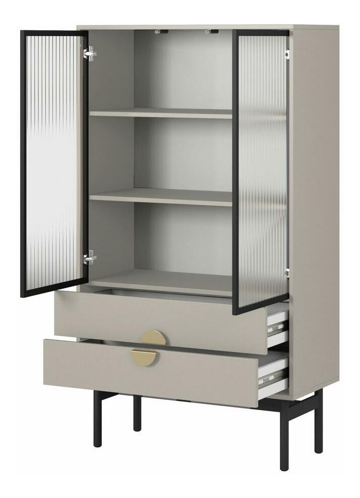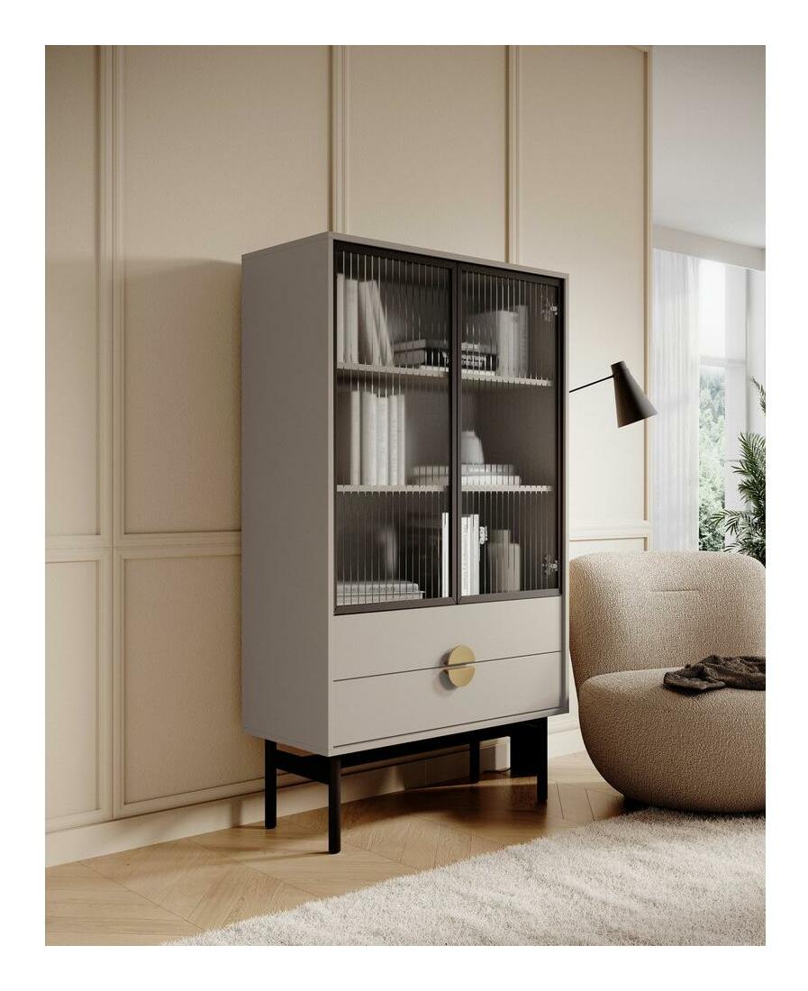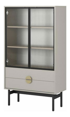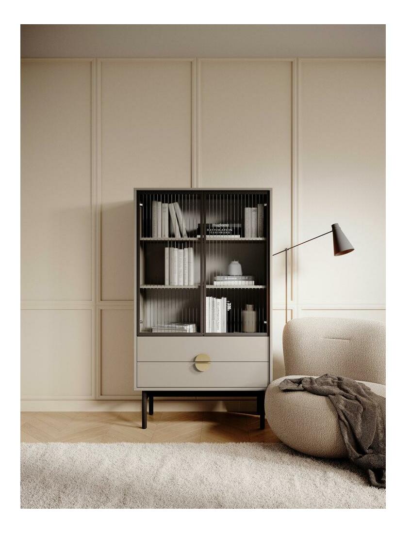 ZobrazitChcete udělat metamorfózu ve svém interiéru? Máte rádi originální řešení a jednoduché formy nábytku? Výběrem naší kolekce vnesete do svého interiéru harmonii a eleganci a potěšíte své hosty Výkladní skříň s jedinečným designem v elegantní béžové barvě dokonale zapadne do moderních interiérů. Je vyroben z kvalitní laminované dřevotřískové desky, která zajišťuje dlouhodobé a bezproblémové používání. Jeho charakter obohacuje pevný rám z černé oceli, který činí nábytek nejen odolným, ale dodává mu i industriální šarm. Zlaté úchytky tvořící kruh jsou zase nejen praktickým prvkem, který usnadňuje otevírání, ale dodávají celé skříňce eleganci a jemný lesk. Tento malý, ale rafinovaný detail odlišuje nábytek a dodává mu mírně luxusní akcent. Vitrína byla navržena s ohledem na funkčnost, proto má zásuvky na menší předměty a uzavřenou část s policemi na dekorace, rodinné suvenýry nebo mini knihovnu. Další výhodou je prosklená přední strana z drážkovaného, dekorativního skla, které dodává celku lehkost a eleganci. Kombinace nevšední barvy s černým rámem a zlatými úchyty vytváří harmonický a moderní celek, který dokonale zapadne do různých interiérových aranžmá a dodá jim jedinečný charakter. Tento kus nábytku je nejen praktickým úložným řešením, ale také designovým prvkem, který ozdobí a zvýrazní individuální styl každé místnosti Detaily produktu: korpus a čela z laminované desky Grey Taupe U750 ST9, odolné vůči vlhkosti, vysoké teplotě. a škrábanců, rám z černé prášek lakované oceli, což usnadňuje udržování pořádku pod nábytkem, zásuvky se otevírají metodou 'push to open', rozměry police: výška 28,5 cm x hloubka 37 cm, úchyty zlaté barvy vyrobené z broušené oceli.