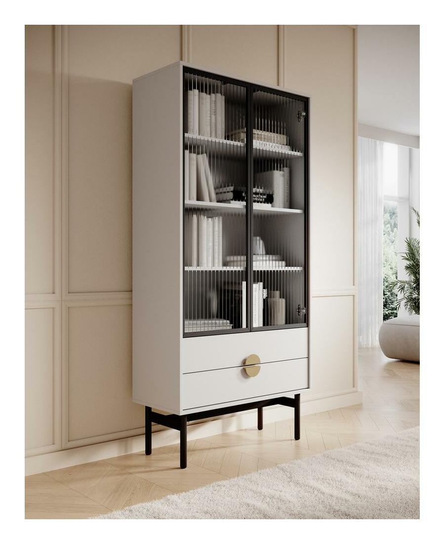 ZobrazitChcete udělat metamorfózu ve svém interiéru? Máte rádi originální řešení a jednoduché formy nábytku? Výběrem naší kolekce vnesete do interiéru harmonii a eleganci a potěšíte své hosty. Vitrína s jedinečným designem v elegantní bílé barvě dokonale zapadne do moderních interiérů. Je vyroben z kvalitní laminované dřevotřískové desky, která zajišťuje dlouhodobé a bezproblémové používání. Jeho charakter obohacuje pevný rám z černé oceli, který činí nábytek nejen odolným, ale dodává mu i industriální šarm. Zlaté úchytky tvořící kruh jsou zase nejen praktickým prvkem, který usnadňuje otevírání, ale dodávají celé skříňce eleganci a jemný lesk. Tento malý, ale rafinovaný detail odlišuje nábytek a dodává mu mírně luxusní akcent. Vitrína byla navržena s ohledem na funkčnost, proto má zásuvky na menší předměty a uzavřenou část s policemi na dekorace, rodinné suvenýry nebo mini knihovnu. Další výhodou je prosklená přední strana z drážkovaného, dekorativního skla, které dodává celku lehkost a eleganci. Kombinace nevšední barvy s černým rámem a zlatými úchyty vytváří harmonický a moderní celek, který dokonale zapadne do různých interiérových aranžmá a dodá jim jedinečný charakter. Tento kus nábytku je nejen praktickým úložným řešením, ale také designovým prvkem, který ozdobí a zdůrazní individuální styl každé místnosti Detaily produktu: korpus a čela z laminované desky Bílé tělo 0110 SM, odolné vůči vlhkosti, vysoké teplotě. a škrábanců, rám z černé prášek lakované oceli, což usnadňuje udržování pořádku pod nábytkem, zásuvky se otevírají metodou 'push to open', rozměry police: výška 28,5 cm x hloubka 37 cm, úchyty zlaté barvy vyrobené z broušené oceli.
