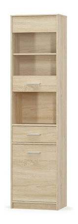 Vitrína jednoduchého moderního designu, která se hodí do dětského nebo studentského pokoje. Vitrína má kromě dvířek i otevřenou poličku a zásuvku. Odložíte si do ní knížky, či různé dekorace. Barevné provedení je dub sonoma.