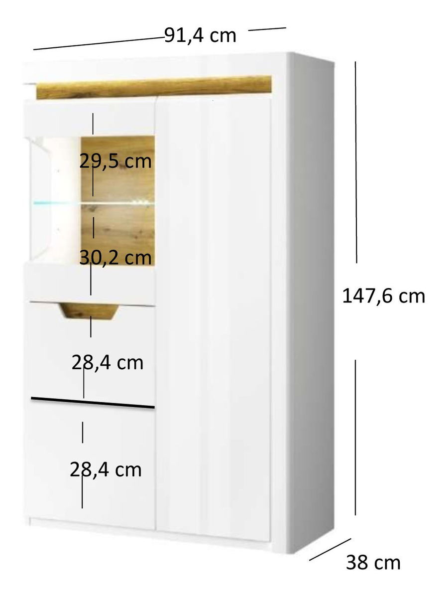 Vitrína Tiera 2d1w (bílá lesklá + dub navarre)