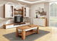Stěna obsahuje dva zrcadlově otočené TV stolky o rozměrech 32 x 138 x 50 cm, dvě zrcadlově otočené vitríny o rozměrech 110 x 80 x 30 cm a dvě police o rozměrech 20 x 116 x 20 cm (výška x šířka x hloubka)