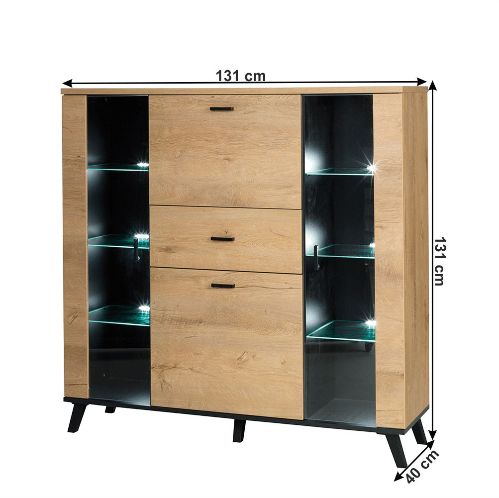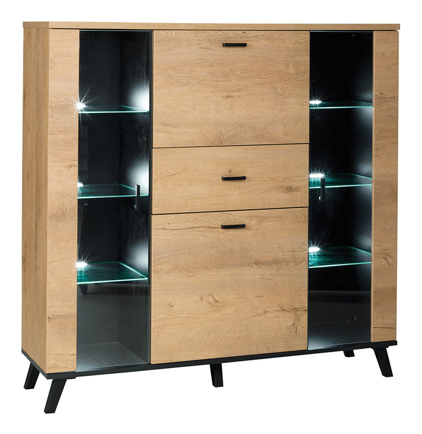 Vitrína typ 3 Siralla (dub lefkas + černá)