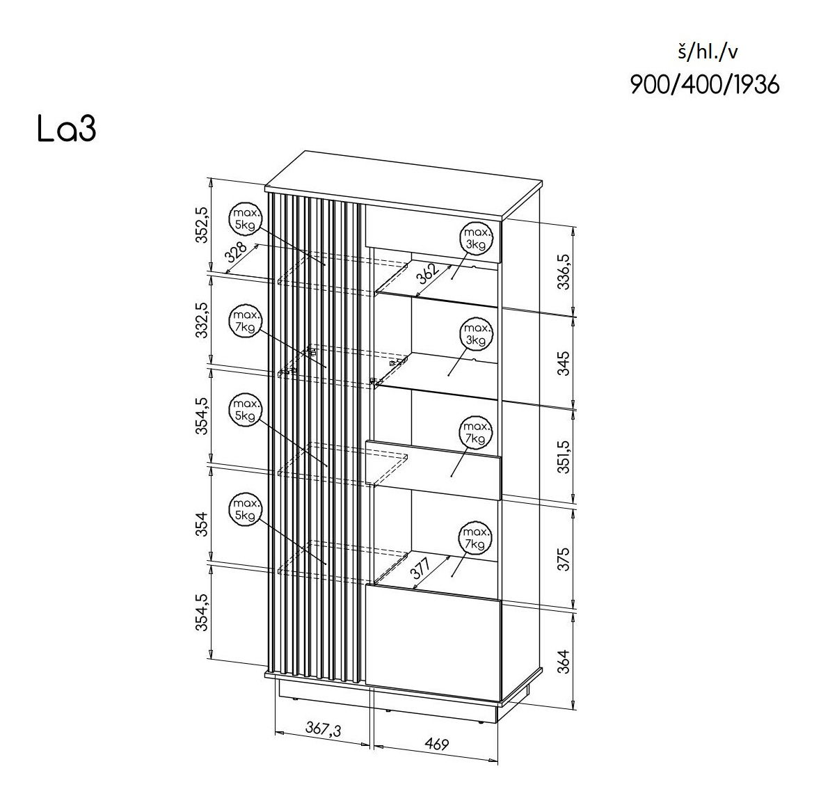 Vitrína typ LA3 Laticia (matná černá + dub wotan)