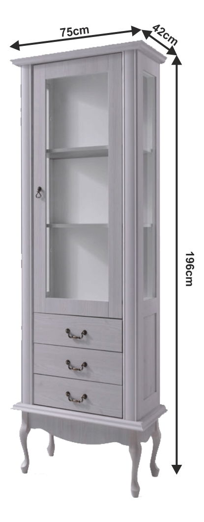 Vitrína Valiara DA4 (bílá) o výšce 196 cm a hloubce 42 cm je ideálním řešením pro ty, kteří hledají moderní a praktické úložné řešení. Tato vitrína je vyrobena z DTD laminovaného materiálu s ABS hranami a má rozměr 75 x 42 x 196 cm o tloušťce materiálu 30 mm. S její sosnovo-bílou barvou dokonale zapadne do každého interiéru. Vitina Valiara DA4 má výšku spodního prostoru od podlahy 25 cm a je vybavena třemi zásuvkami, policemi, 3D efektem, kovovými úchytkami a dřevěnými nožičkami. domů.