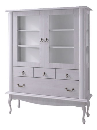 Vitrína Valiara DA5 v bílém provedení o výšce 158 cm a hloubce 42 cm je ideálním doplňkem pro Váš interiér. Vitrína je vyrobena z DTD laminovaného materiálu s ABS hranami a má tloušťku materiálu 30 mm. Se zvýrazněním sosny v bílé barvě, díky 3D efektu, se vitrína stává atraktivním prvkem nábytku. Díky svým rozměrům 125x42x158 cm, vitrína nabízí dostatek úložného prostoru, který je členěn na čtyři zásuvky a police. Vitrína má dvě dveře, které jsou vybaveny kovovými úchyty a dřevěnými nožičkami. Výška spodního prostoru od podlahy je 25 cm. Vítejte Vaše hosty s ponosem, když vstoupí do Vašeho obývacího prostoru s touto skvělou vitrínou.