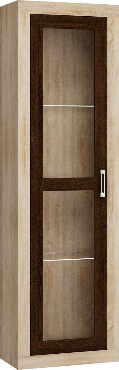 ZobrazitVitrína Venice VRN 08 v dubu Sonoma světlá a tmavá barva je skvělým doplňkem pro každý obývací pokoj či ložnici. S výškou 198 cm a hloubkou 34 cm poskytuje dostatek úložného prostoru pro vaše oblíbené předměty a dekorace. Tato vitrína disponuje čtyřmi skleněnými policemi, na které můžete umístit své oblíbené porcelánové sety nebo dekorační předměty. Dveře jsou vyrobeny z kvalitního materiálu a mají úchyt s matným povrchem, který vytváří moderní vzhled. Pro svoji pevnost a stabilitu je vitrína vyrobena z kvalitního materiálu. Díky kombinaci světlého a tmavého dubu Sonoma perfektně zapadne do každého interiéru a přitáhne pozornost svým jedinečným designem.