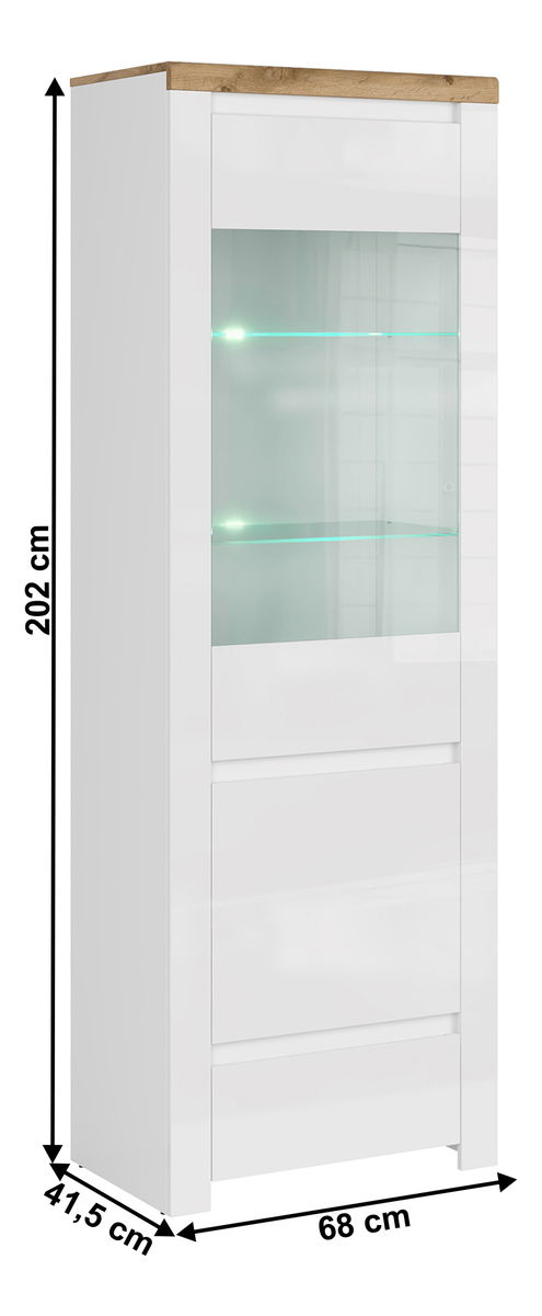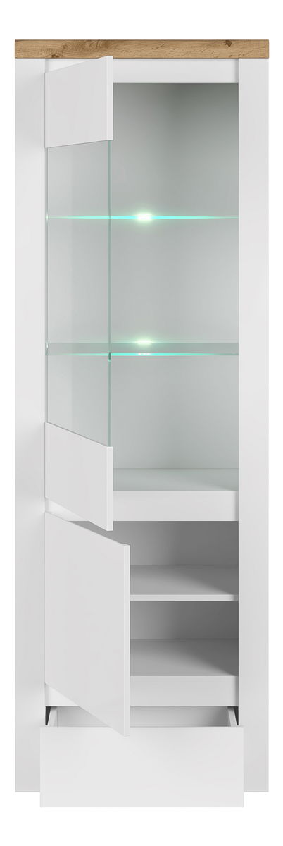 Vitrína Vilgi 1D1W1S (lesk bílý + dub wotan)
