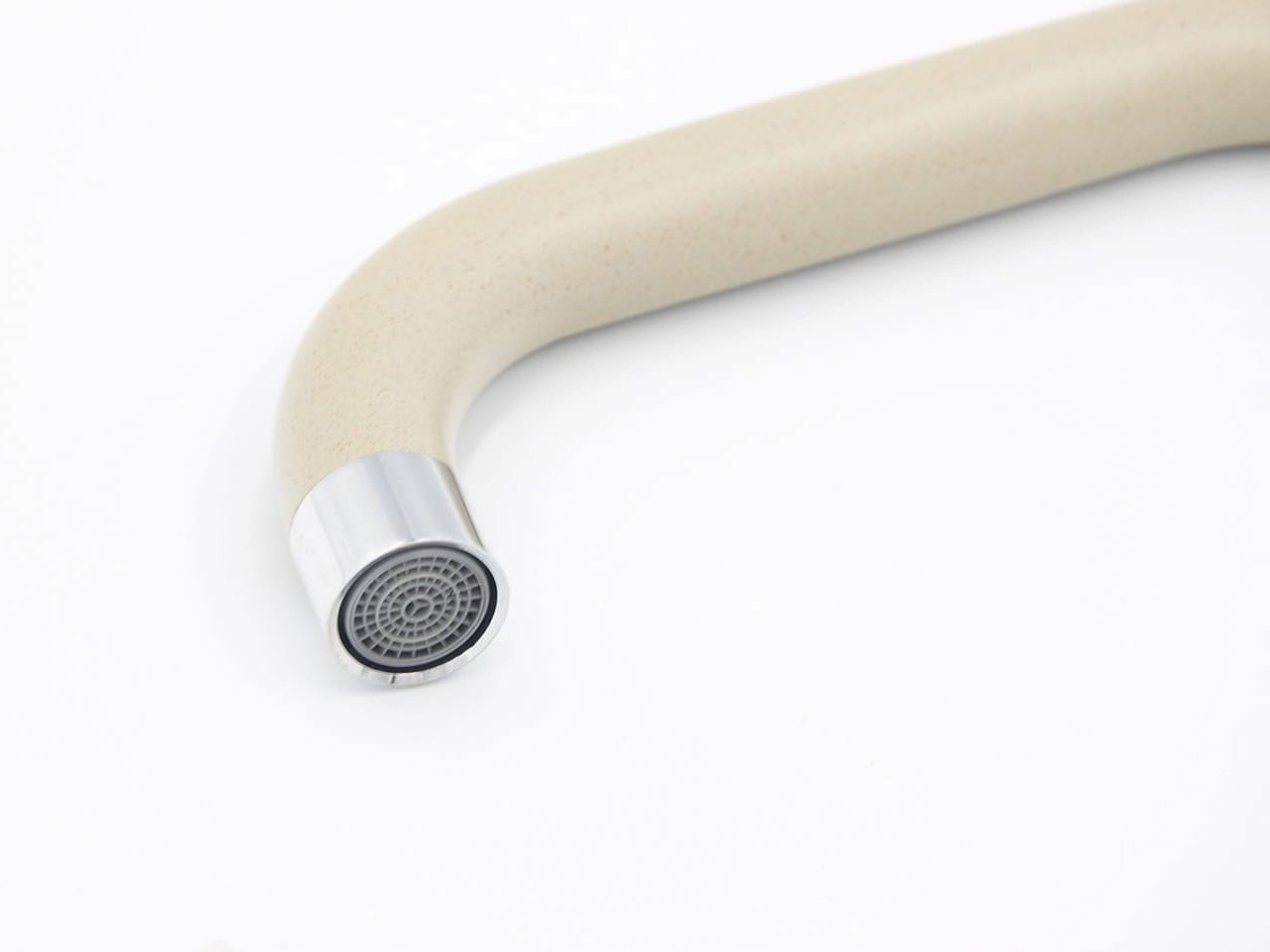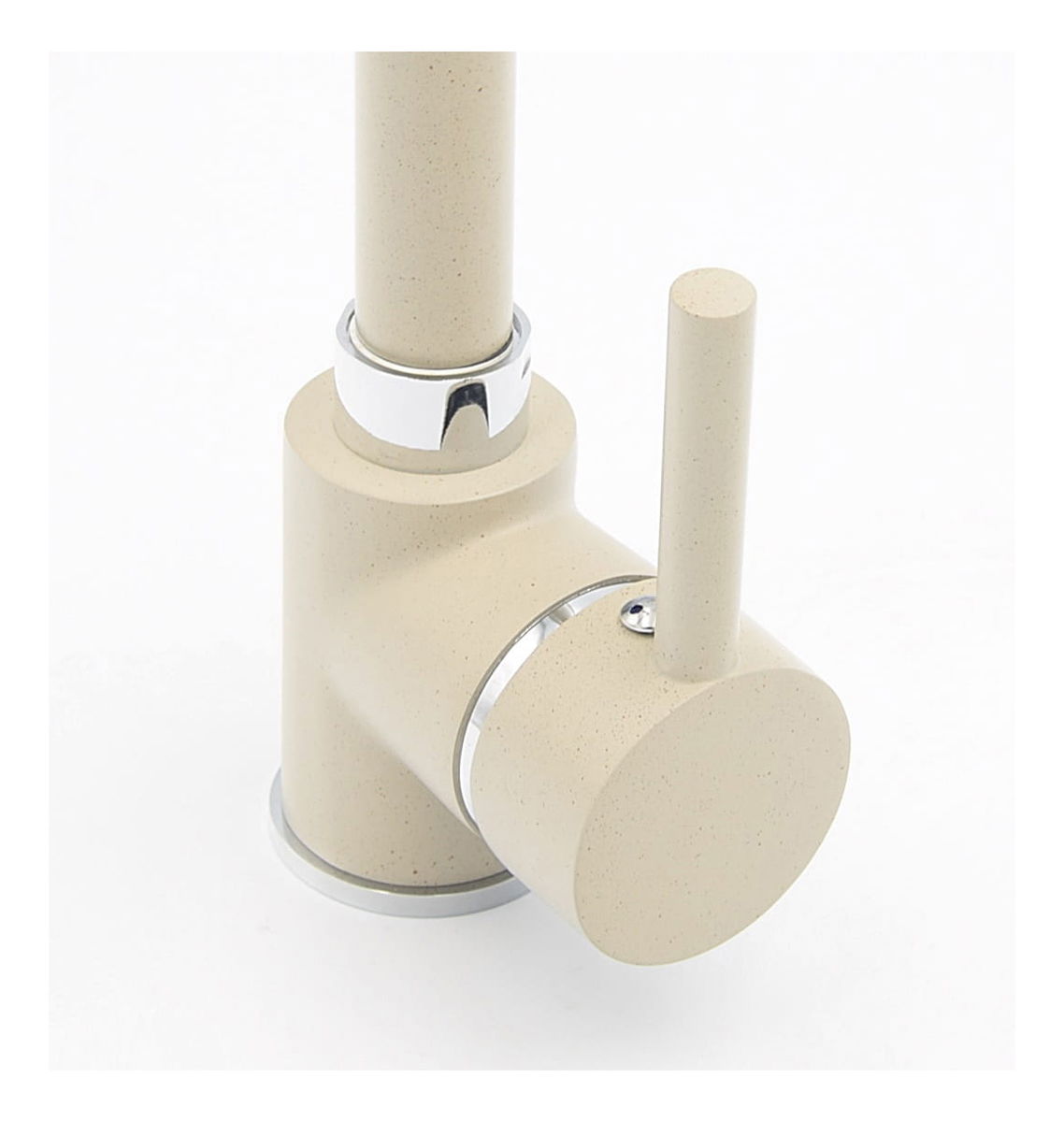 Vodovodní baterie Stallus je dokonalým řešením pro ty, kdo hledají pohodlnou a praktickou alternativu k tradiční kuchyňské baterii. Stojanová baterie je vyrobena z odolné mosazi, což zaručuje její odolnost vůči korozi a dlouhou životnost. Zabudovaná keramická hlavice o průměru 40 mm zajišťuje plynulou regulaci průtoku vody, zatímco vyměnitelný perlátor o průměru 22 mm umožňuje snadné odstraňování vodního kamene. Standardní montážní otvor o průměru 35 mm umožňuje snadnou instalaci baterie a 360stupňová otočná výtoková hubice usnadňuje její používání v kuchyni.Baterie je také vybavena povrchovou úpravou odolnou vůči skvrnám, která zajišťuje dlouhodobé používání bez ztráty estetického vzhledu.Výška baterie je 310 mm a dosah výtoku od středu baterie je 190 mm. Výška po perlátor je 245 mm.