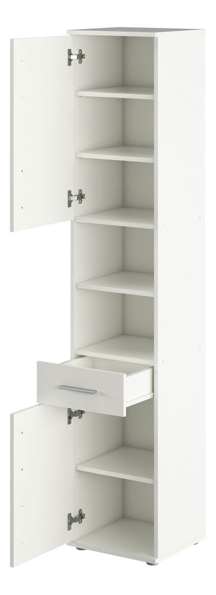 Vysoká koupelnová skříňka Leah 05 (bílá matná)