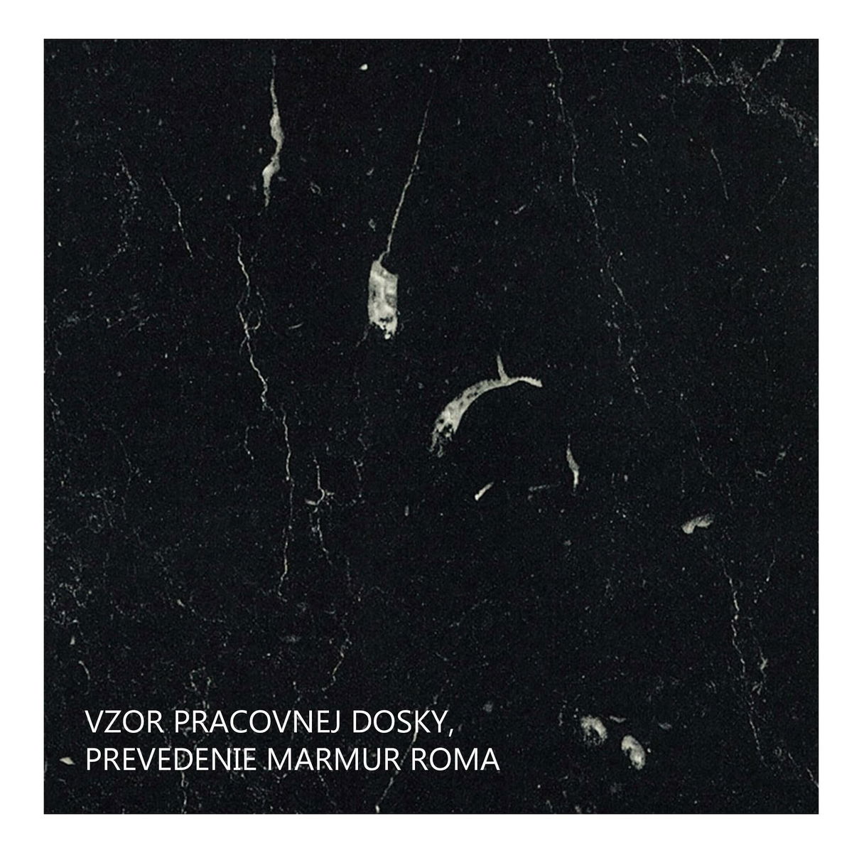 Možnost dokoupení pracovní desky dub artisan za cenu 69 EUR/m nebo marmur roma v ceně 65 Eur/bm. Možnost dokoupit univerzální dřez LAY ON.