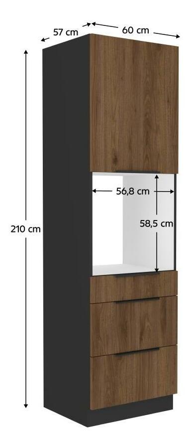 Vysoká skříňka na vestavnou troubu Monzesa 60 DPS 210 3S1F (ořech okapi + černá)