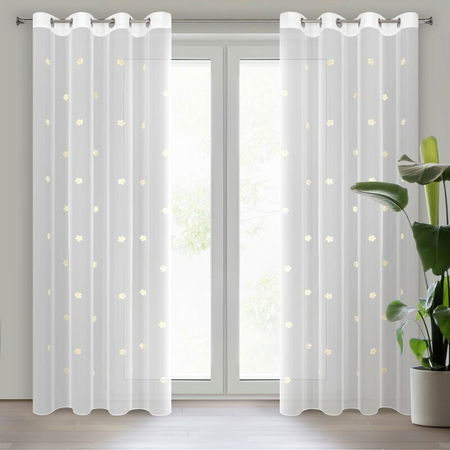 Záclona 140x250 cm Elssa (bílá + žlutá) Bílá je kvalitní a moderní záclona, která je ideální pro váš obývací prostor nebo ložnici. Je vyrobena z kvalitního materiálu, který zaručuje vysokou odolnost proti poškození a dlouhou životnost. Svou velikostí 140 x 250 cm se hodí na větší okna a její barevné provedení v bílé a žluté barvě dodává místnosti jemnou atmosféru a svěžest. Záclona je jednoduchá na instalaci a můžete ji snadno přizpůsobit vašim potřebám. Díky jejím kvalitním materiálům je také jednoduchá na údržbu a čištění. Tato záclona je skvělým doplňkem pro váš domov a zaručeně vám poskytne příjemnou atmosféru a pohodlí.