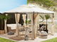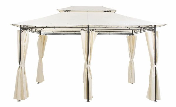 Tento altán je ideální pro trávení volných chvil a velká rodinná setkání v zahradě během grilování i jiných příležitostí. Stabilitu zaručuje pevná a robustní ocelová konstrukce, kterou doplňují béžové závěsy. Ty lze zatáhnout vždy, když se ochladí. Výstup vzduchu v horní části zajišťuje dobrou cirkulaci i při zatažených závěsech.