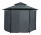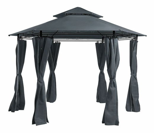 Připravte svou zahradu na letní období s tímto oválným altánkem. Je dostatečně prostorný na to, aby se pod jeho střechu vešel stůl s židlemi nebo sedací souprava a zároveň každého ochrání před sluncem nebo deštěm. Jeho závěsy jsou vyrobeny ze snadno udržovatelného materiálu, který je odolný vůči UV záření a měnícím se povětrnostním podmínkám, což z něj činí ideální prvek do každé zahrady. Díky šedé barvě v kombinaci s černým rámem se hodí k různým stylům, od moderních až po ty, které jsou inspirovány retro motivy.