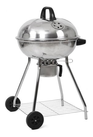 Nerezový gril s odkládací plochou, kolečky a odnímatelným popelníkem. 65 x 59 x 100 cm
