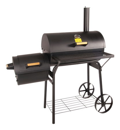 Stylový zahradní gril na dřevěné uhlí s osobitým designem i zpracováním za bezkonkurenční cenu. Gril je vyroben z kvalitního ocelového plechu s černou žáruvzdornou barvou proti nežádoucím vlivům. Standardní výbavou je teploměr a komín s kouřovou klapkou i chromované grilovací rošty.Díky malému a velkému topeništi je možné použít gril hned na tři způsoby – k malému a velkému grilování a k douzování, neboli nepřímému grilování. Vrchní a spodní odkládací police zajišťují dostatečnou odkládací plochu. Gril tak splní nároky každého milovníka zahradního grilování a je vhodný i pro menší množství připravovaných pokrmů bez nutnosti topit v celé ploše grilu.Pro větší pohodlí a atraktivnější vzhled je gril opatřen dřevěnými madly a velkými ocelovými koly pro pohodlnější přemisťování. Kvalitní materiál a robustní konstrukce zajišťují jeho dobrou stabilitu a bezpečný provoz. Gril bude nejen stylovým doplňkem každé zahrady, ale i skvělým kuchařem všech oblíbených grilovaných specialit.