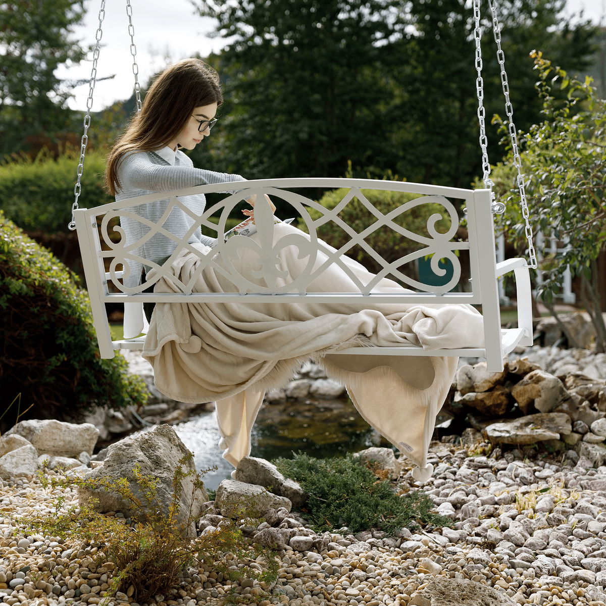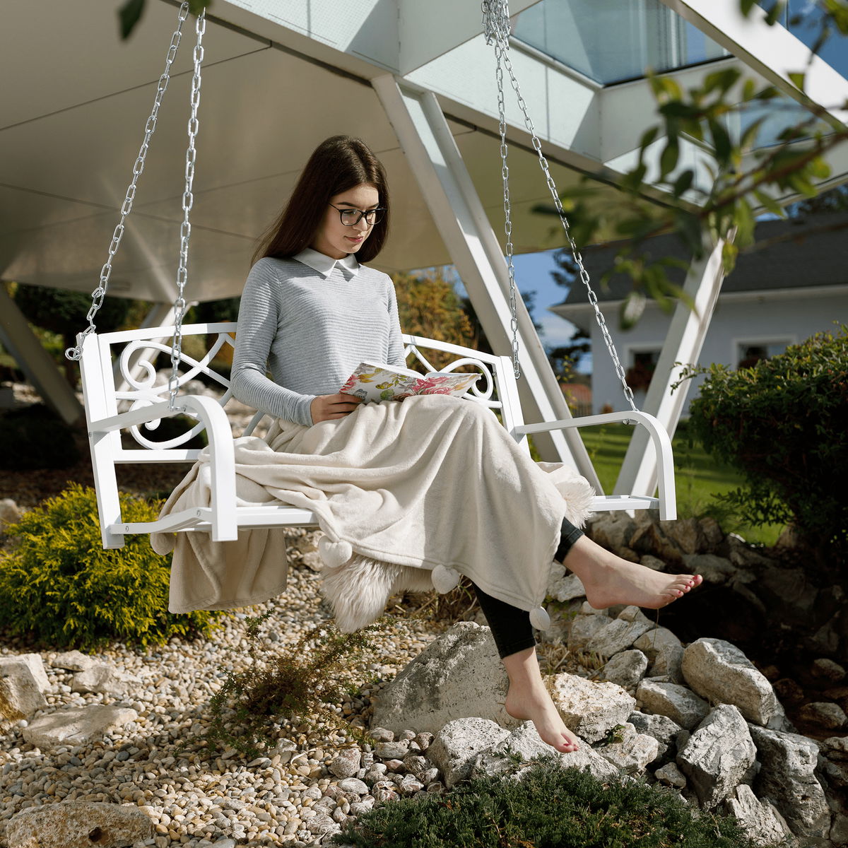 Houpačky tvoří nejen funkční úlohu, ale také estetickou. Máte krásnou terasu, ale málo místa na ní a moc toužíte po houpačce? Máme pro vás řešení – zahradní závěsná houpačka Abey. Houpačku jednoduše upevníte o konstrukci či střechu terasy, nebo o půdu na balkoně a máte splněný sen. Uměli byste si ji představit i ve vaší zahradě? Stačí si pořídit vhodný stojan. Vyrobena je z bílé oceli. Na opěrce zad se nacházejí ornamenty, díky kterým houpačka působí romantickým dojmem. K zavěšení je v balení připraven řetěz, který se poté instaluje na opěrky rukou. Abey se snadno udržuje a snadno a rychle čistí. Zvyšte si pohodlí tím, že na houpačku přidáte polštáře. Odpočívejte s tímto moderním doplňkem.