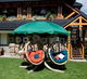 Krásná houpací souprava z borovicového dřeva se čtyřmi houpačkami a stříškou, která se bude vyjímat ve vaší zahradě. Houpačka má centrální nohu a jednotlivé křesla jsou vyrobeny z lepených vrstev borovicového dřeva. Křeslo je otočné kolem své vlastní osy.