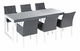 Tato moderní 7dílná zahradní jídelní souprava vytvoří dokonalé místo pro letní rodinná setkání. Poutavý design a jednoduché tvary jsou hlavními rysy této vysoce kvalitní soupravy. Židle jsou vyrobeny z odolného textilního šedého materiálu s měkkou výplní. Tento materiál je rychleschnoucí, takže se nemusíte obávat ani dešťových přehánek. Stolová deska je vyrobena z textilního vlákna s tvrzeným sklem na vrchu a nabízí dostatek místa na občerstvení a nápoje.