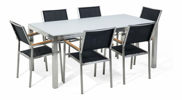 Zahradní jídelní sada Grosso (černá) (bílá skleněná deska) (černé židle)