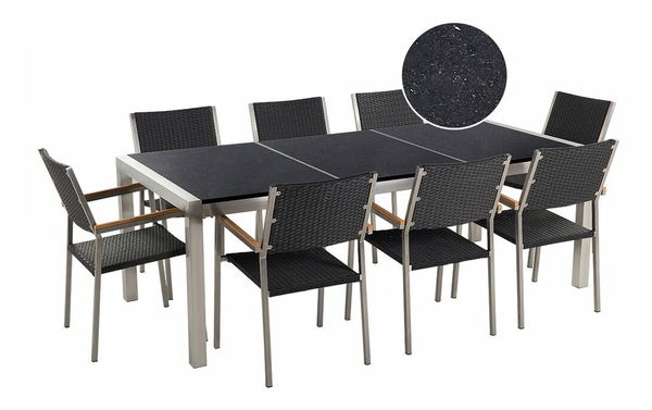 Zahradní jídelní sada Grosso (černá) (ratanové židle) (pro 8 osob) (kámen)