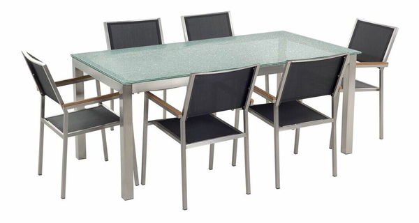 Zahradní jídelní sada Grosso (grafit) (6 černých židlí)