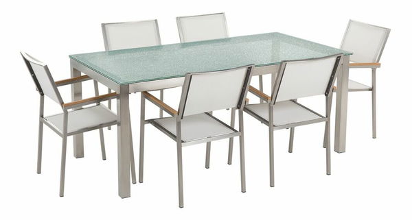 Zahradní jídelní sada Grosso (průhledná) (6 bílých židlí)