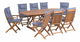 Zahradní jídelní sada Mali (světlé dřevo) (modré podsedáky)