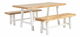 Tato zahradní souprava, vyrobená z kvalitního akáciového dřeva, které se snadno udržuje, je ideální pro trávení volného času venku. Nábytek je odolný vůči dlouhodobému slunečnímu záření, stejně jako nízkým teplotám. Přírodní barvu dřeva podtrhují nohy v klasické bílé barvě. Vychutnejte si paprsky slunce s touto mimořádně pohodlnou sadou na terasu, která se díky svému designu s čistými liniemi hodí do jakéhokoli vnějšího prostředí.