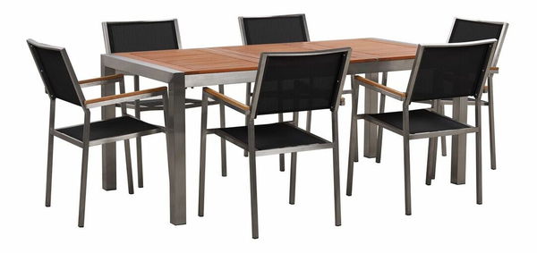 Zahradní jídelní souprava GROSSO (eukalyptus) (černá + grafit) (pro 6 osob)