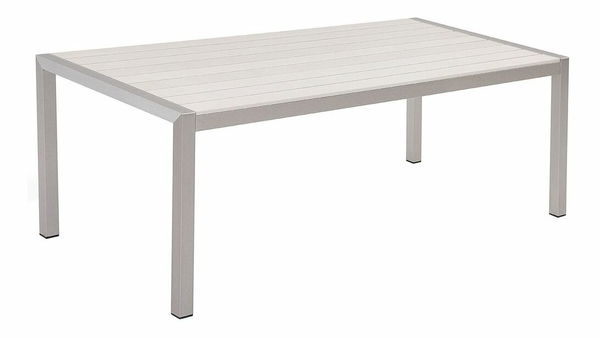 Připravte svou zahradu na léto s tímto venkovním jídelním stolem. Stříbrný rám vyrobený z odolného hliníku se snadno udržuje a stolová deska z dřevoplastu doplňuje celkový design stolu. Stůl je odolný proti povětrnostním vlivům, což zaručuje jeho dlouhou životnost. Díky své velikosti nabízí dostatek prostoru pro 6 osob.