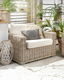 Trend ratanového nábytku ze 70. let se vrací zpět v podobě pohodlného designu tohoto zahradního křesla, které nabízí skvělé místo k odpočinku i zábavě. Přírodní ratanový výplet doplní jakýkoli prostor a vnese do něj nádech vintage stylu. Křeslo je vybaveno tlustými sedacími polštáři, které nabízejí vynikající komfort.