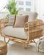 Vneste do své domácnosti přírodní materiály a využijte jejich všestrannosti, odolnosti a estetického vzhledu. Toto ratanové křeslo dodá boho atmosféru každému obývacímu pokoji, balkonu či zimní zahradě. Zaoblené boční opěrky jsou dekorativní, zatímco tlusté ratanové nohy zajišťují celkovou stabilitu. Měkké a pohodlné bavlněné polštáře mají snímatelné potahy pro snadnější údržbu. Během zimní sezóny je křeslo třeba umístit do interiéru. Ven jej lze přesunout, až když se počasí zlepší, ale je vhodné vyhnout se dešti, vlhkosti a dlouhodobému vystavení slunečnímu záření.