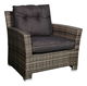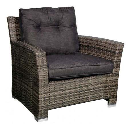 Stylové křeslo do zahrady z opletu z umělého ratanu. Vyznačuje se stabilní hliníkovou konstrukcí. Je odolné povětrnostním vlivům, nenáročné na údržbu. Balení je včetně podušek (sedáky se zipem, opěráky kroužkově prošity, síla cca. 10 cm).