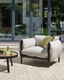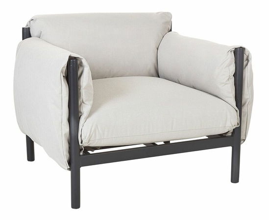 Toto křeslo je navrženo tak, aby poskytovalo výjimečně pohodlné sezení v zahradě či na terase. Minimalistický černý hliníkový rám je doplněn světle šedými polštáři, díky kterým působí elegantně a pohodlně. nebo v kombinaci s dalšími kousky ze stejné kolekce.