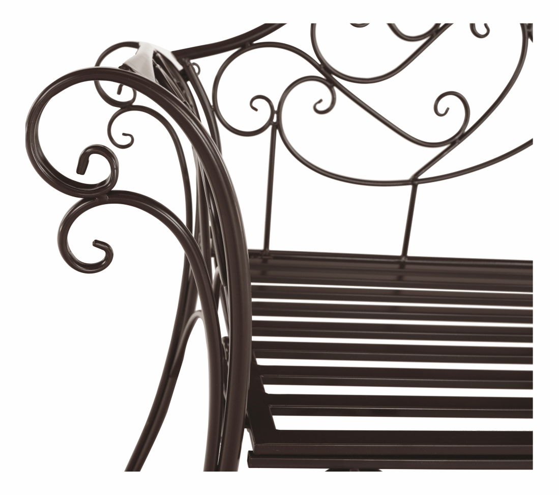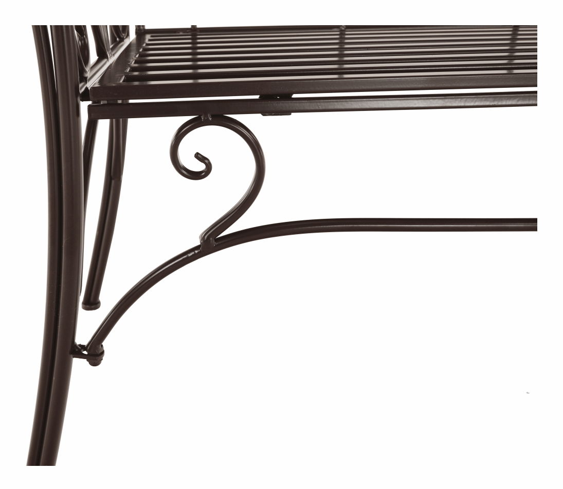 Zahradní lavička Entalia (hnědá) je ideálním doplňkem pro vaše zahrady a terasy. Je vyrobena z vysoce kvalitního kovu a její barva hnědá dokonale odpovídá přírodnímu prostředí. Rozměry lavičky jsou 134x51x89 cm s výškou sedu 43 cm a hloubkou sedu 42 cm. Šířka sedu je 98,5 cm a nosnost lavičky je až 150 kg. Lavička je dodávána bez polštářů a v demontu. Zaujme vás její romantický vzhled, který dotváří ozdobné prvky, které lavička disponuje. Splní vaše očekávání a poskytne vám pohodlné místo k odpočinku v přírodě.