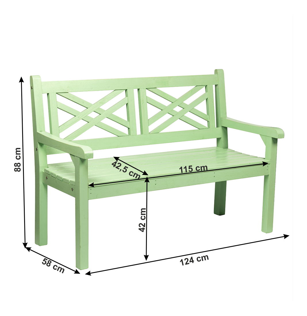 Vyzkoušejte novou zahradní lavičku Finbona v neo mint barvě. Tato nadčasová lavice je perfektním doplňkem pro váš oblíbený koutek v zahradě. Je vyrobena z příjemného dřeva a má výšku 88 cm, hloubku 58 cm a šířku sedu 141,5 cm. S výškou sedu 42 cm a hloubkou sedu 42,5 cm je tato lavička ideální k odpočinku a relaxaci. Ornamenty na opěrce zad dodávají této lavičce romantický nádech. Lavička Finbona je také velice spolehlivá a vydrží až 170 kg váhy. Neváhejte a ozdobte svůj dvůr touto krasavice, která Vám umožní obdivovat okolí ve velkém stylu.