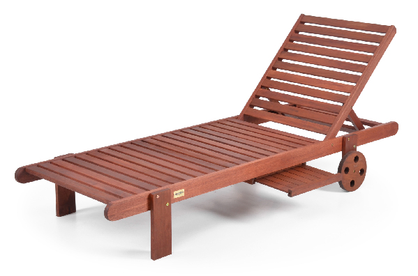 Dřevěné polohovatelné lehátko z tropického dřeva Meranti s poličkou na časopisy, knihy nebo osvěžující letní drink. Lehátko je vhodné pro zahradní kryté plochy a interiéry. Při vhodném ošetření teakovým olejem lze používat v exteriéru.