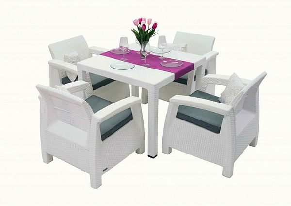 Elegantní zahradní sestava Corfu Mini z umělého ratanu vhodná do menších otevřených prostranství nebo do zimních zahrad. Masivní křesla dodávají sestavě originální a moderní vzhled. Sestava obsahuje stůl a čtyři křesla.