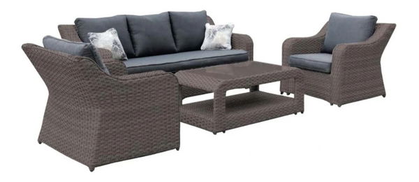 Luxusní zahradní sestava dvou křesel, jedné sedačky a stolu z velmi kvalitní stabilní hliníkové konstrukce a umělého ratanu. Vhodné pro exteriéry a interiéry. Vhodné také pro použití ve vlhkém prostředí. Včetně čalounění.