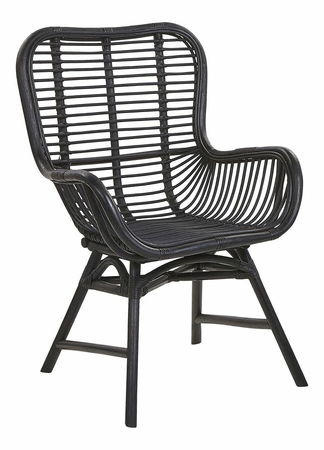 Tato pohodlná ratanová židle vytvoří ve vašem interiéru letní atmosféru. Zaoblený design s vysokým opěradlem nabízí úžasný komfort během dlouhých hodin strávených čtením vaší oblíbené knihy. Je vyrobena z robustního, snadno udržovatelného ratanu v elegantní černé barvě. Díky otevřené struktuře působí vzdušným dojmem a je ideální volbou do interiéru v jakémkoli stylu.