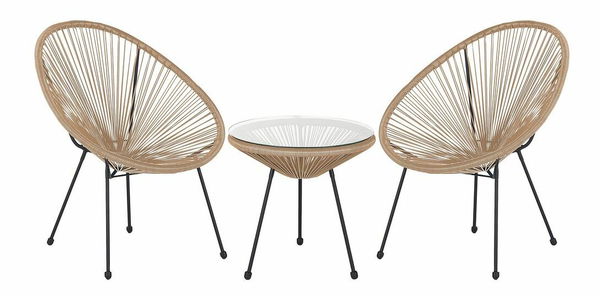 Multifunkční souprava sestávající ze 2 židlí a stolu, vhodná do interiéru i exteriéru. Sedadla mají výplet z umělého ratanu na robustním ocelovém rámu s práškovou povrchovou úpravou. Stolová deska vyrobená z tvrzeného skla je zajištěna příchytkami a poskytuje dostatek prostoru pro umístění nápojů a občerstvení. Souprava inspirovaná ikonickým mexickým designem rozzáří každý prostor a stane se poutavým prvkem.