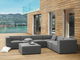 Výjimečný komfort sezení, šik design, funkčnost a nadčasová krása – to vše dokonale vystihuje tuto elegantní soupravu venkovního nábytku v neutrální šedé barvě. Hluboké sedátko zajišťuje neuvěřitelné pohodlí při sezení a práškem lakovaný kovový rám nabízí stabilitu. Tato sedací souprava vypadá nádherně v zahradě nebo na terase, ale může být také dokonalým doplňkem vašeho interiéru. Díky odolnému polyesterovému čalounění s pěnou Quick Dry je souprava ideální pro použití v exteriéru. Jednotlivé kusy lze umístit samostatně nebo spojit se středovým sedadlem a vytvořit velkou rohovou pohovku s taburetem.