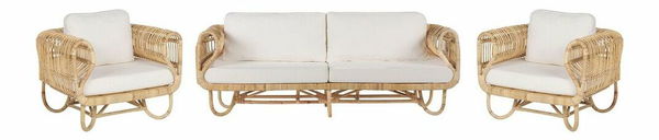 Vneste do své domácnosti přírodní materiály a využijte jejich všestrannosti, odolnosti a estetického vzhledu. Tato ratanová souprava dodá boho atmosféru každému obývacímu pokoji, balkonu či zimní zahradě. Zaoblené boční opěrky jsou dekorativní, zatímco tlusté ratanové nohy zajišťují celkovou stabilitu. Měkké a pohodlné bavlněné polštáře mají snímatelné potahy pro snadnější údržbu. Během zimní sezóny je třeba ji umístit do interiéru. Ven ji lze přesunout, až když se počasí zlepší, ale je vhodné vyhnout se dešti, vlhkosti a dlouhodobému vystavení slunečnímu záření.