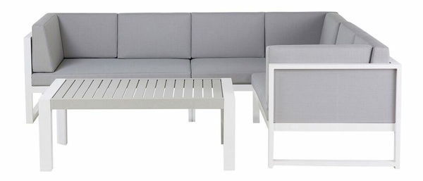 Elegantní modulární sedací souprava je základním kouskem pro vaši terasu nebo zahradu. Díky minimalistickému designu ladí s jakýmkoli moderním dekorem. Pohovka vyrobená z kvalitního hliníkového rámu, který je díky práškovému lakování odolný vůči korozi, je vybavena hrubě čalouněnými polštáři a nabízí výjimečné pohodlí a sofistikovaný vzhled. Díky odnímatelným polštářům lze soupravu bez námahy dlouhodobě udržovat v dobrém stavu.
