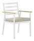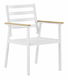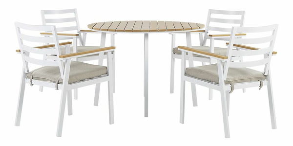Vychutnejte si večeři pod širým nebem s touto klasickou jídelní soupravou. Stůl i židle jsou vyrobeny z lehkého, ale odolného hliníku s bílým práškovým lakováním pro dlouhotrvající efekt. Stolová deska ze světlého dřeva nabízí dostatek prostoru až pro čtyři osoby, zatímco židle zaručují pohodlné sezení díky měkkým polštářům. Díky skandinávskému designu se souprava perfektně hodí k široké škále tradičních i moderních stylů zařízení.