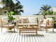 Udělejte ze svého venkovního prostoru místo k setkání s přáteli a rodinou. Tato sada nábytku se skládá ze dvou křesel, pohovky a konferenčního stolku. Všechny kusy jsou vyrobeny z trvanlivého a kvalitního bambusového dřeva. Díky polyesterovým polštářům k sezení v bílé barvě se vám bude sedět příjemně a pohodlně. Vzhledem k materiálům, ze kterých je souprava vyrobena, bude ideální volbou do prostor v rustikálním stylu.